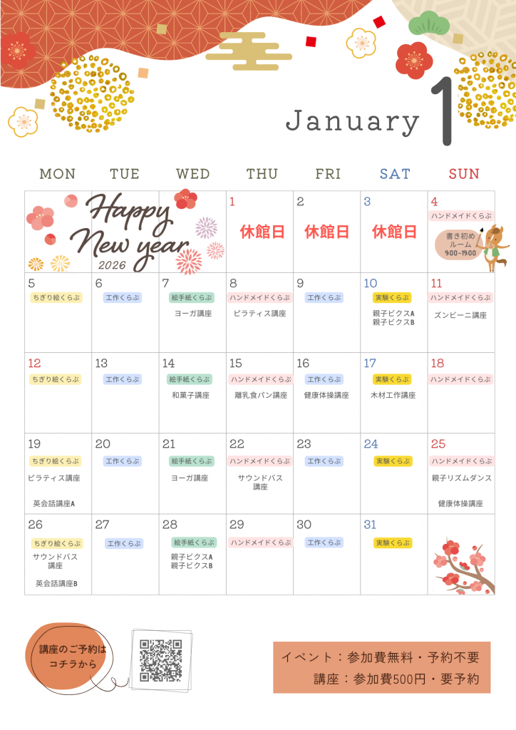 ・2026年 1月の講座の予約受付は【12/21